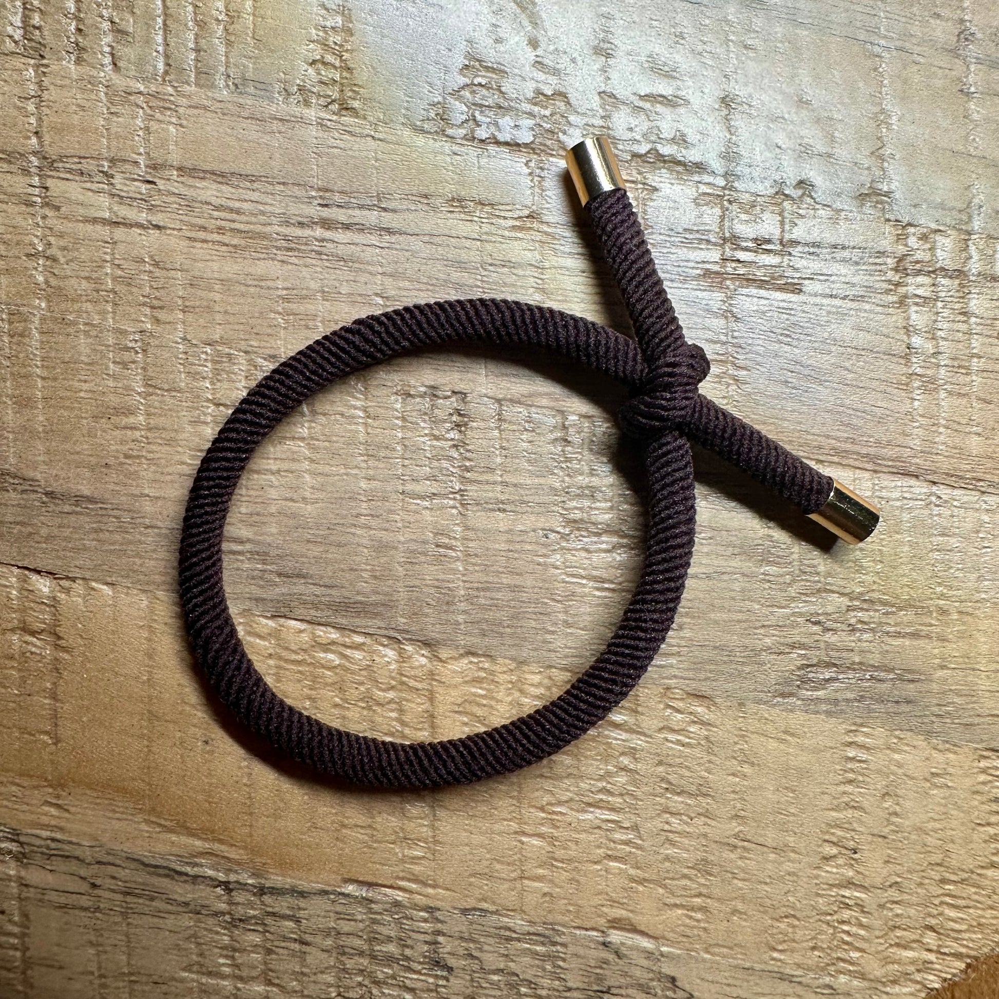 Dit leuke haarelastiekje kun je ook gebruiken als armbandje en combineren met je outfit op kleur. Leuk om te combineren met de gouden armbandjes van Meer dan Hip door het gouden uiteinde.