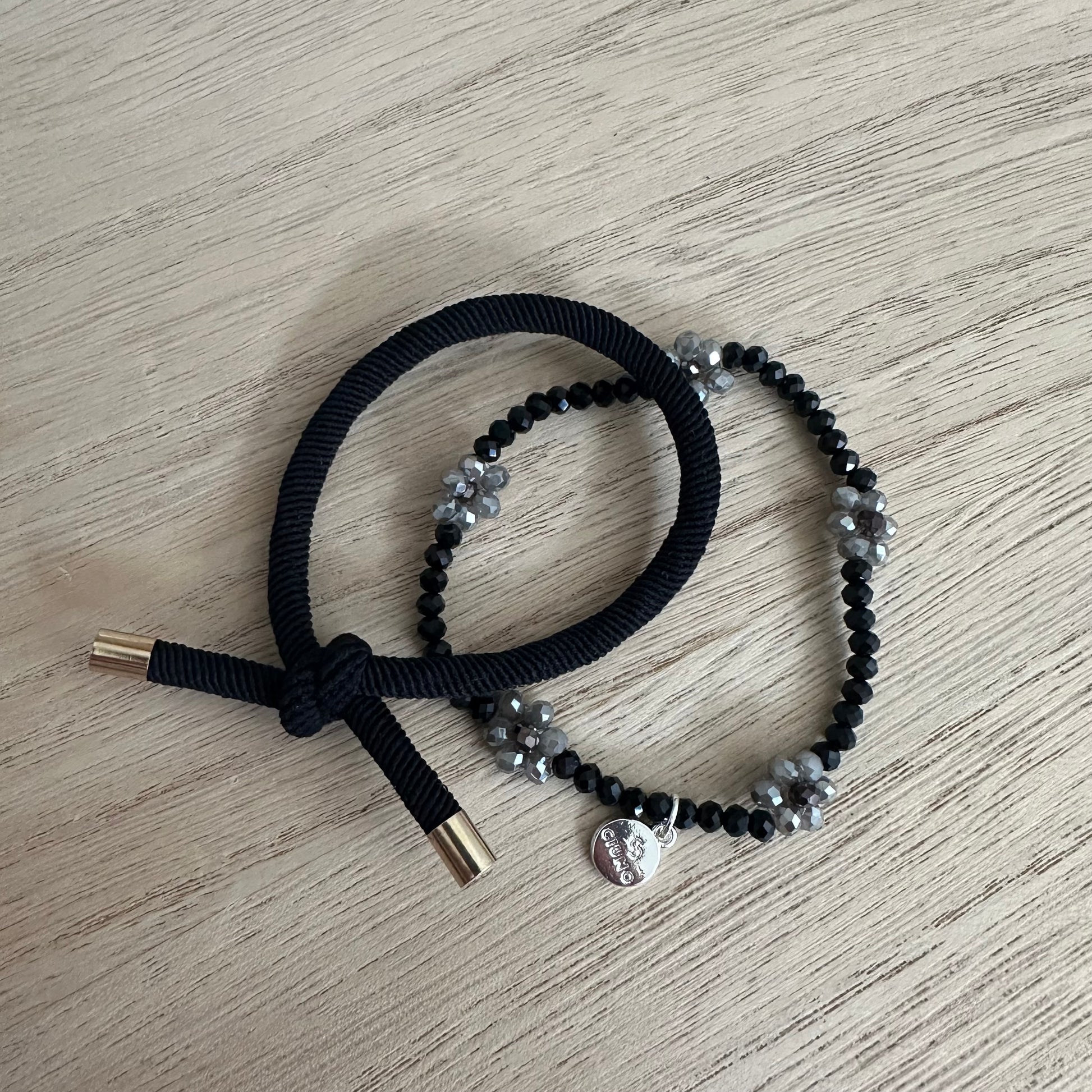 Dit leuke haarelastiekje kun je ook gebruiken als armbandje en combineren met je outfit op kleur. Leuk om te combineren met de gouden armbandjes van Meer dan Hip door het gouden uiteinde.