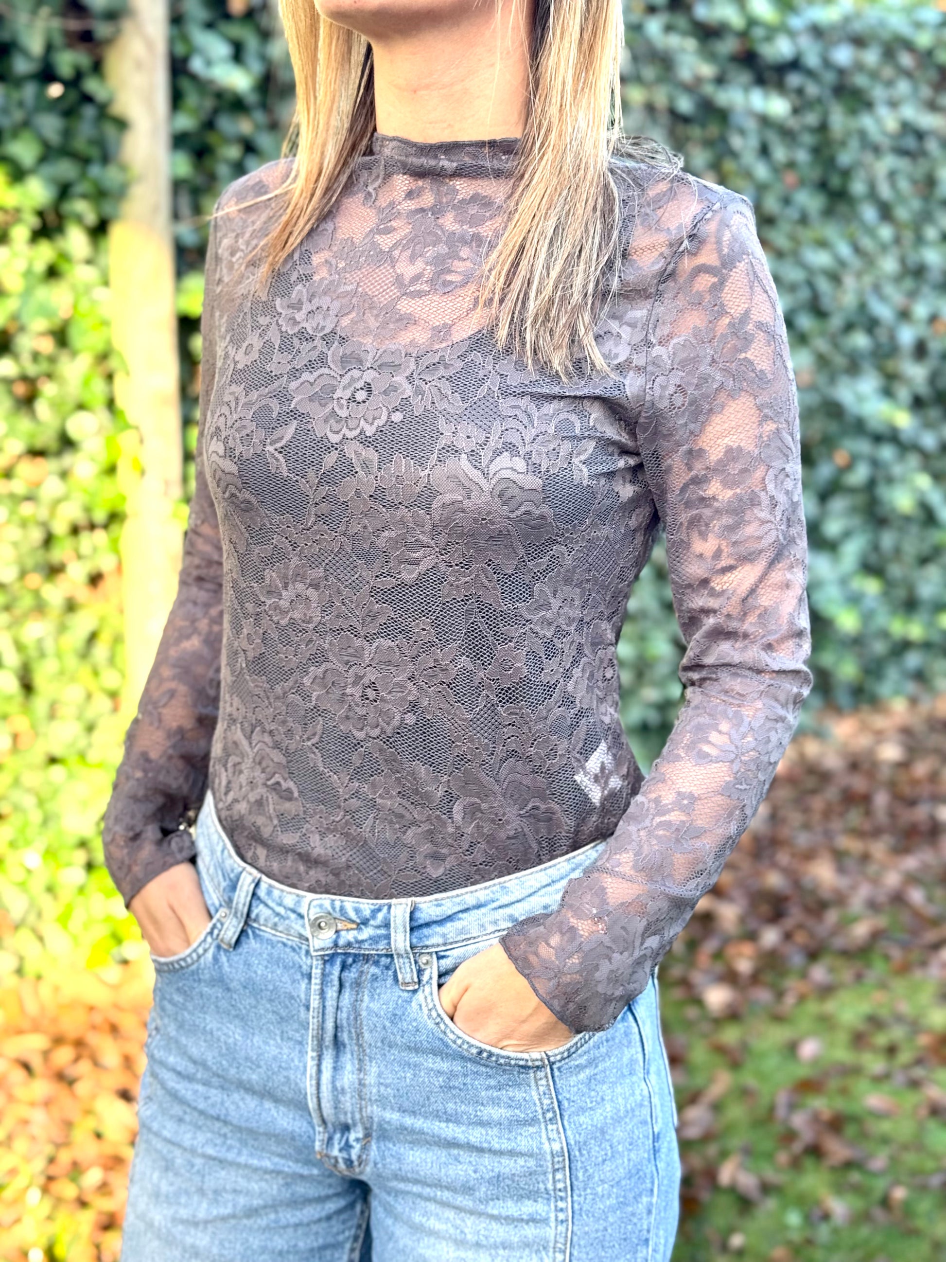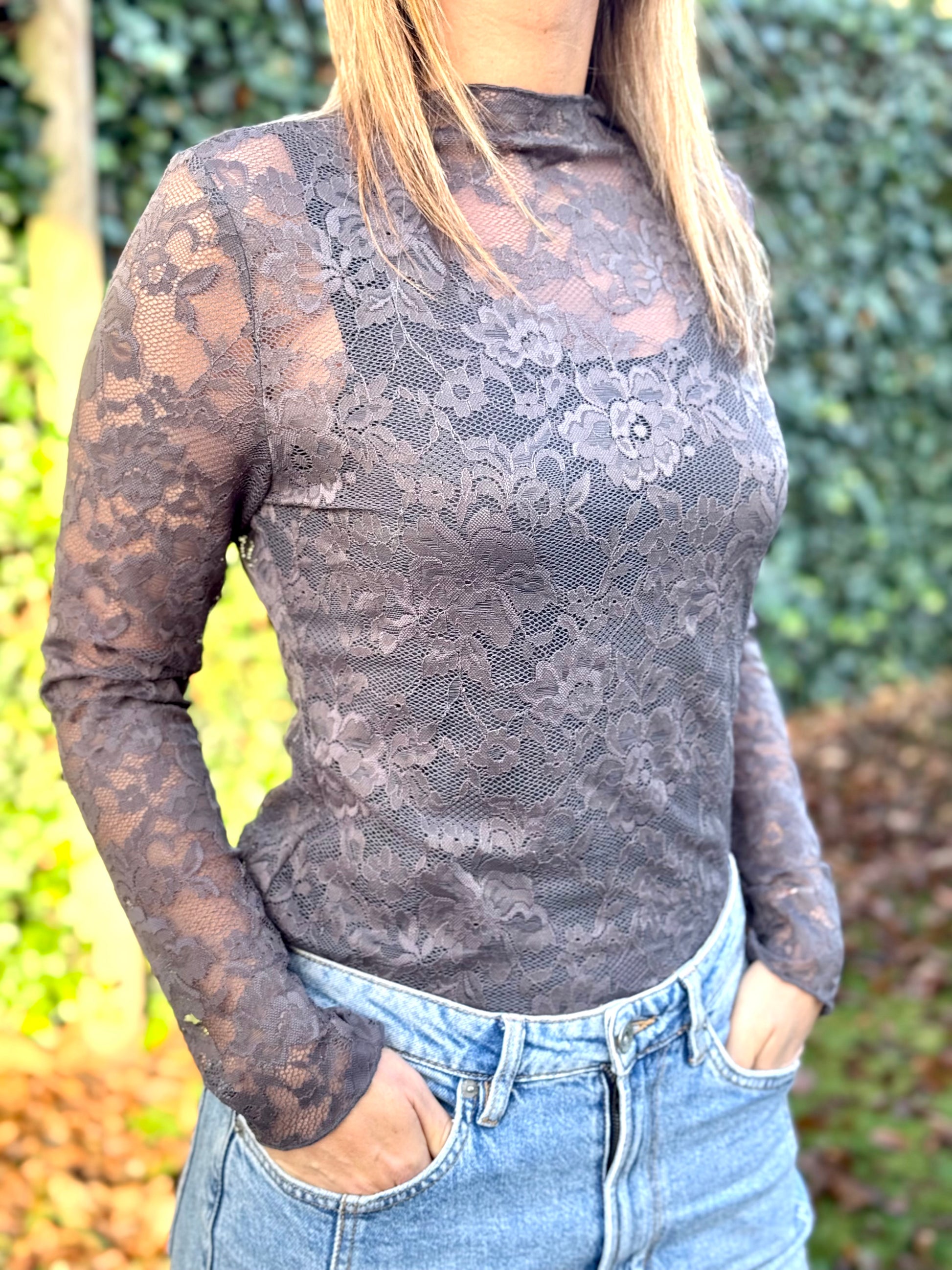 De trend van nu: kanten topjes. Draag ze met een topje eronder of draag ze onder een leuke blazer, gilet of onder een trui met korte mouwen, zoals de alpaca trui in de collectie van Meer dan Hip.
