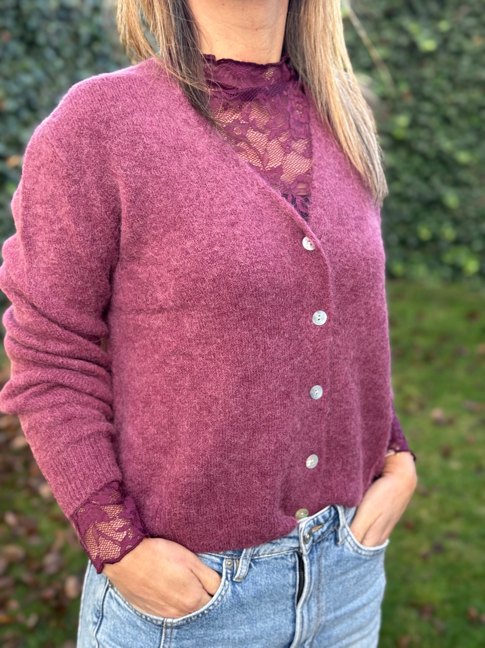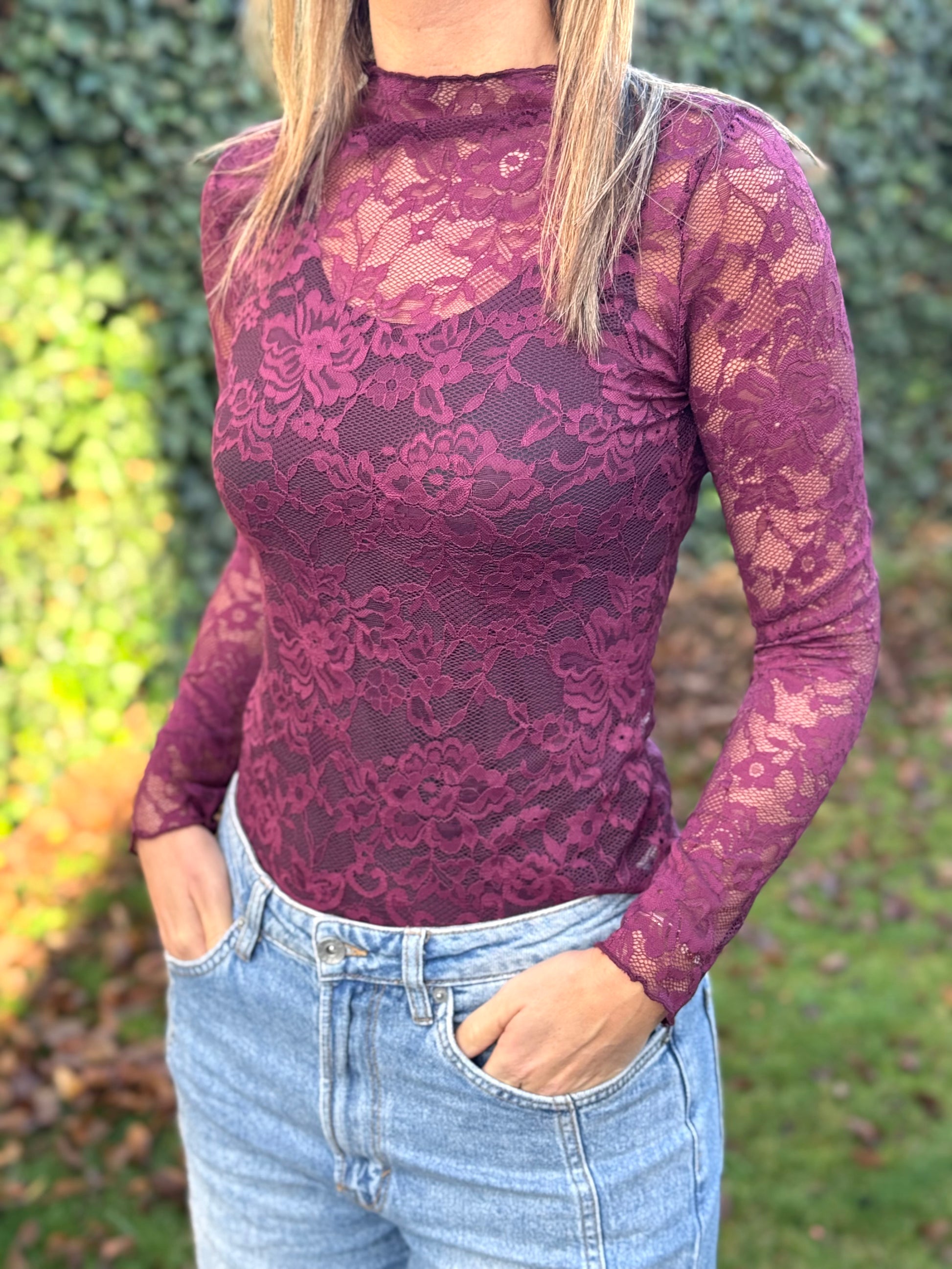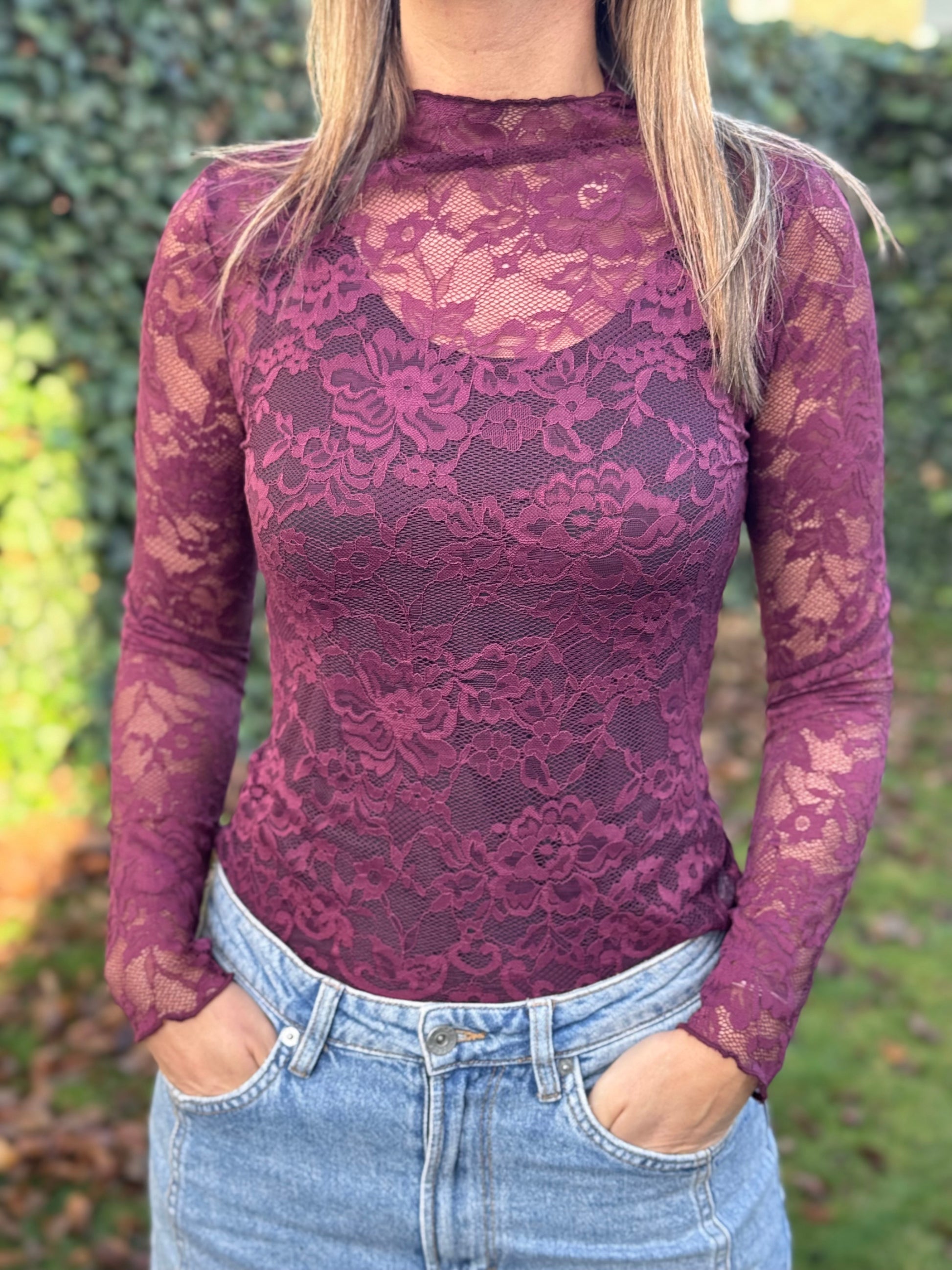 Kanten top Prune lange mouw (dieprood/paars)