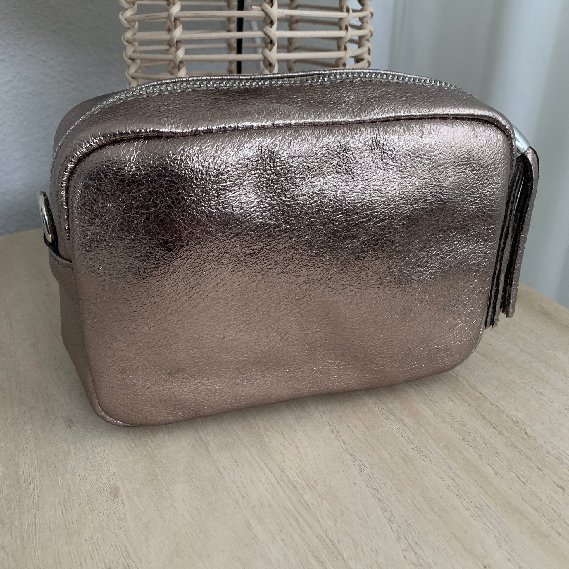 Lederen crossbody tas Brons 'Tassel' met zilveren ritsje