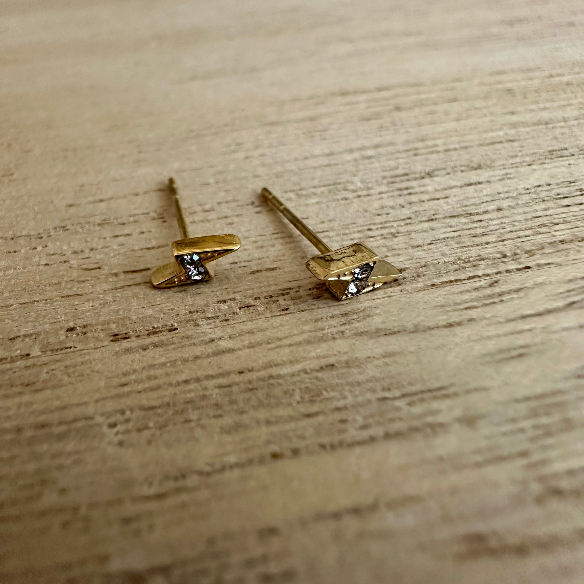 Oorstuds mini bliksem goud steentje