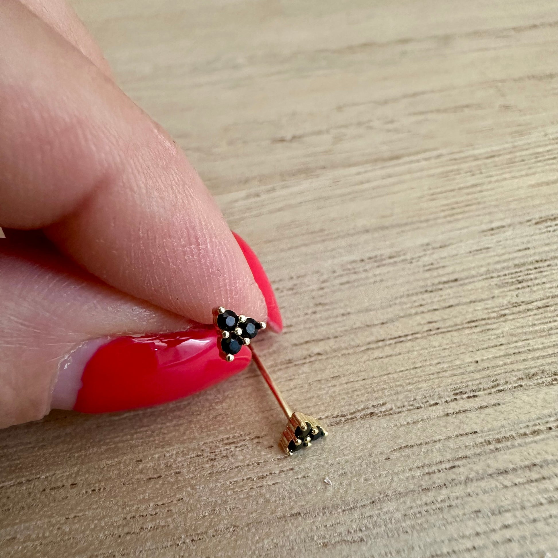 Oorstuds driehoek zwarte steentjes