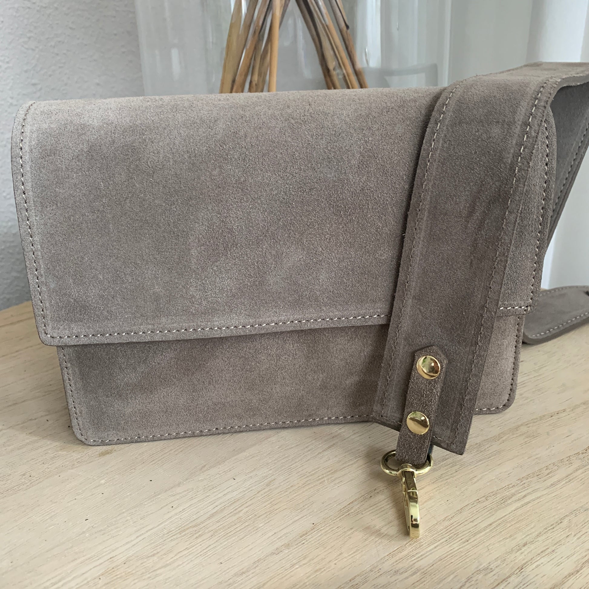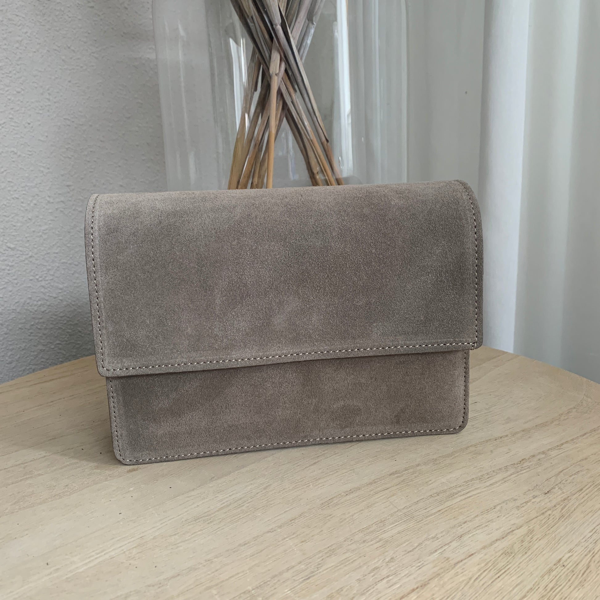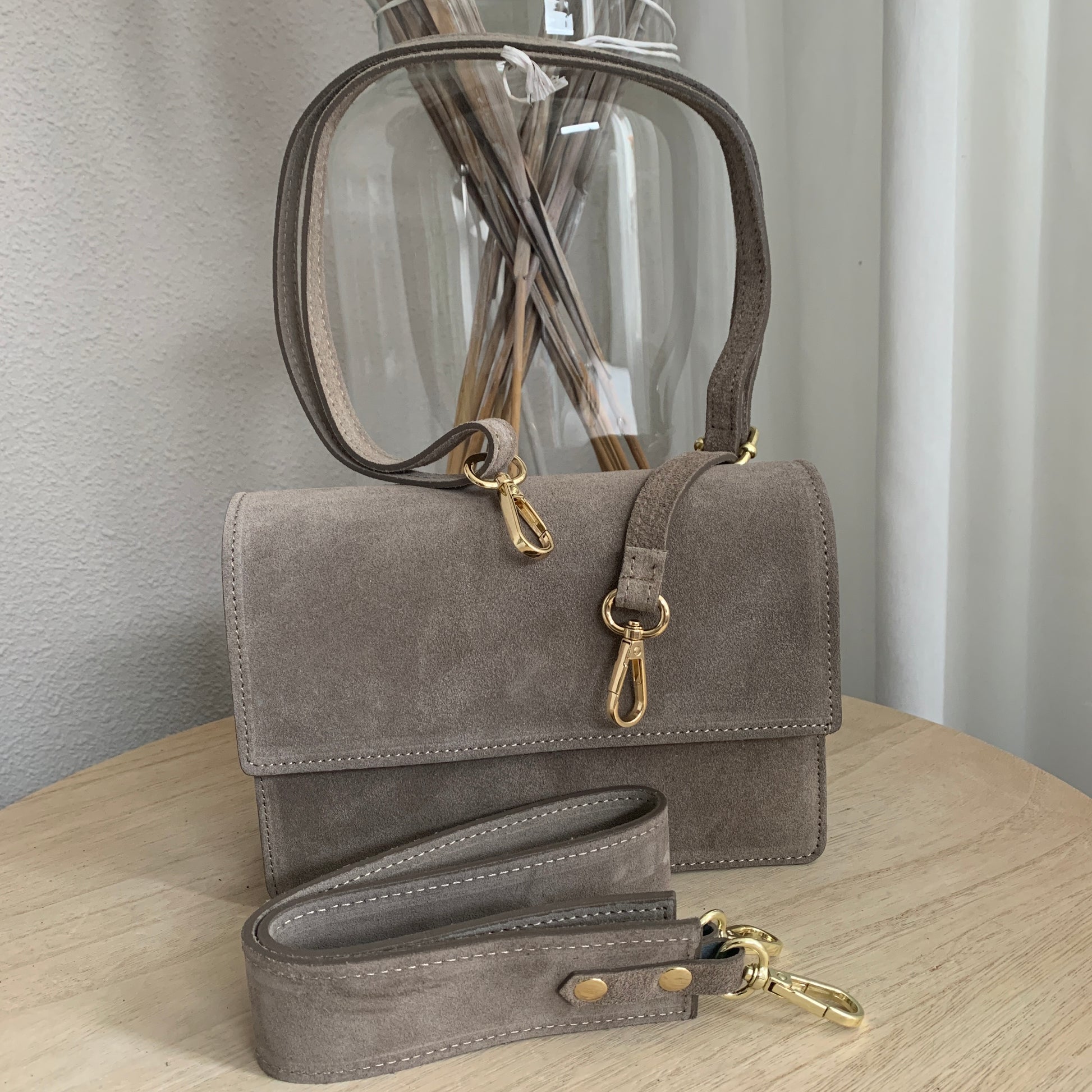 Prachtige stijlvolle leder suèdine tas ‘Mud’ kleur
