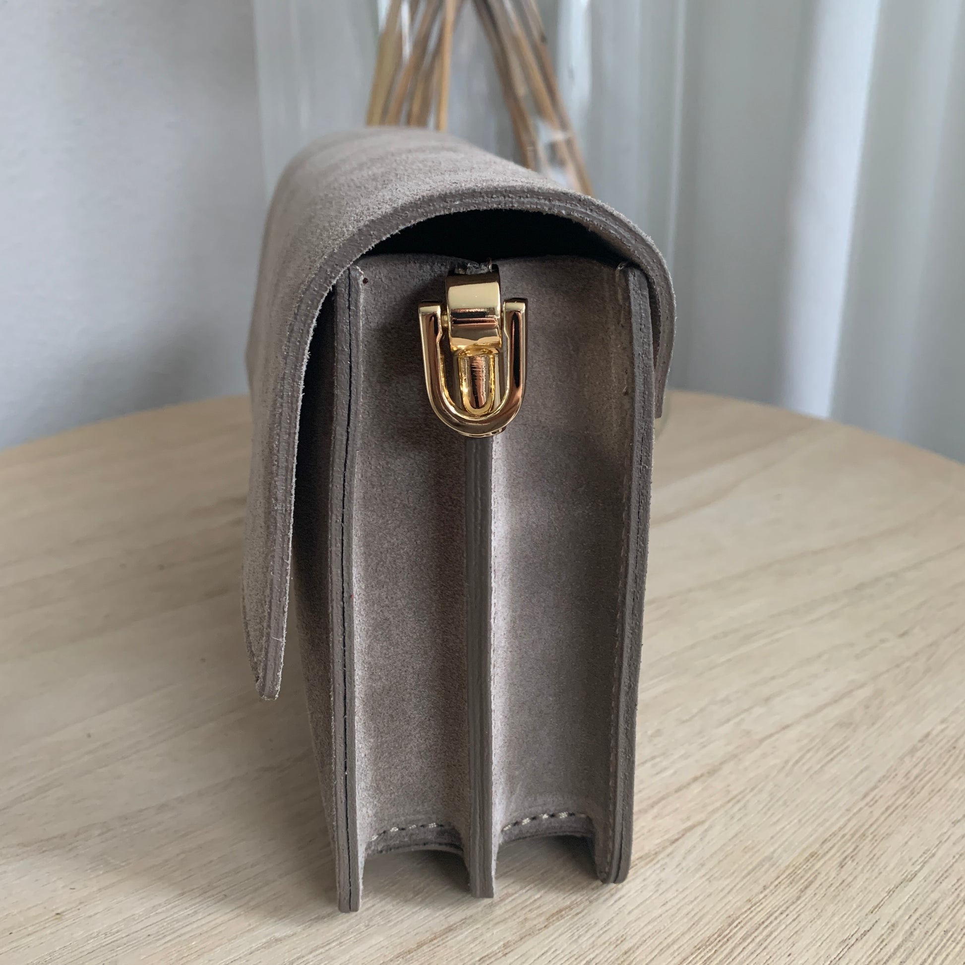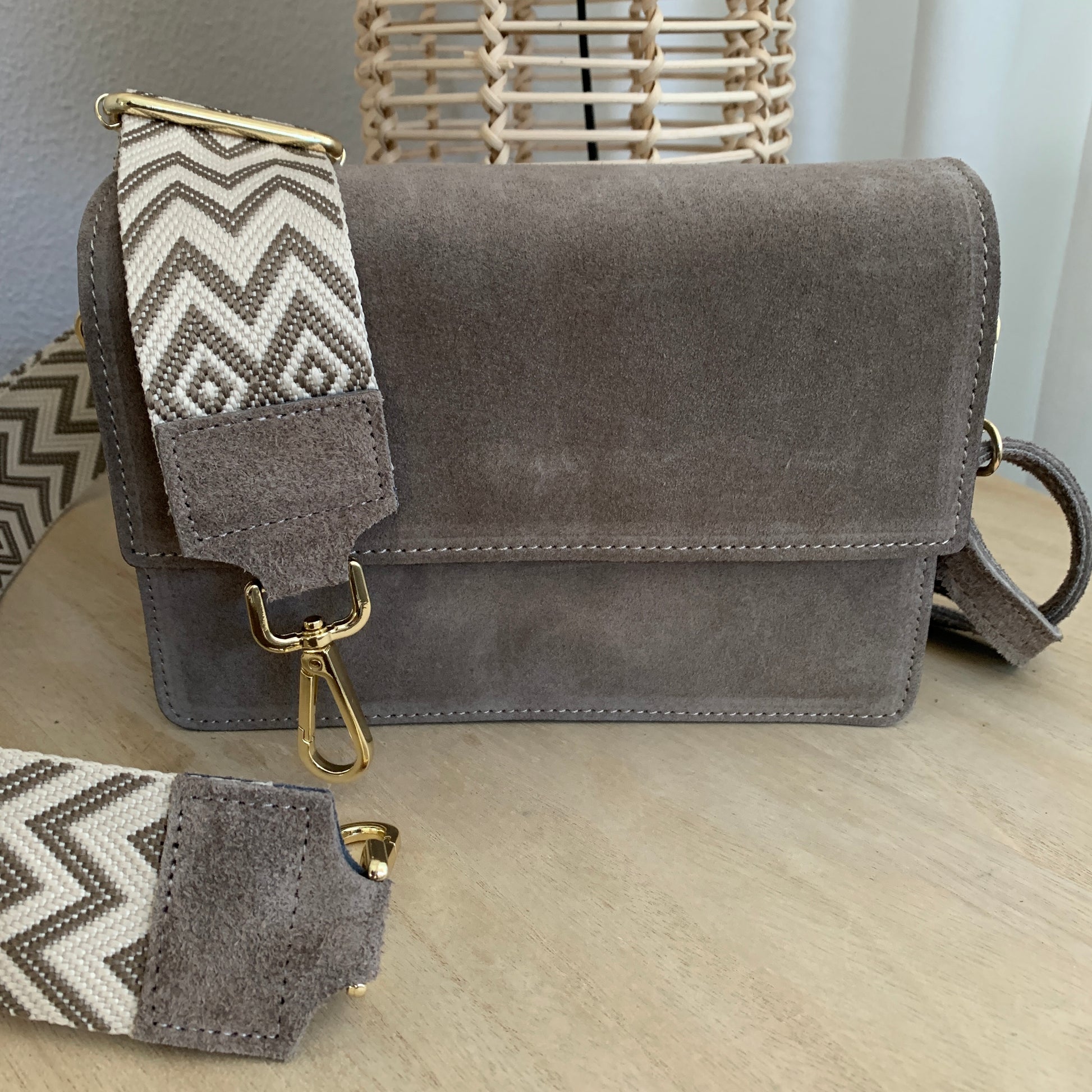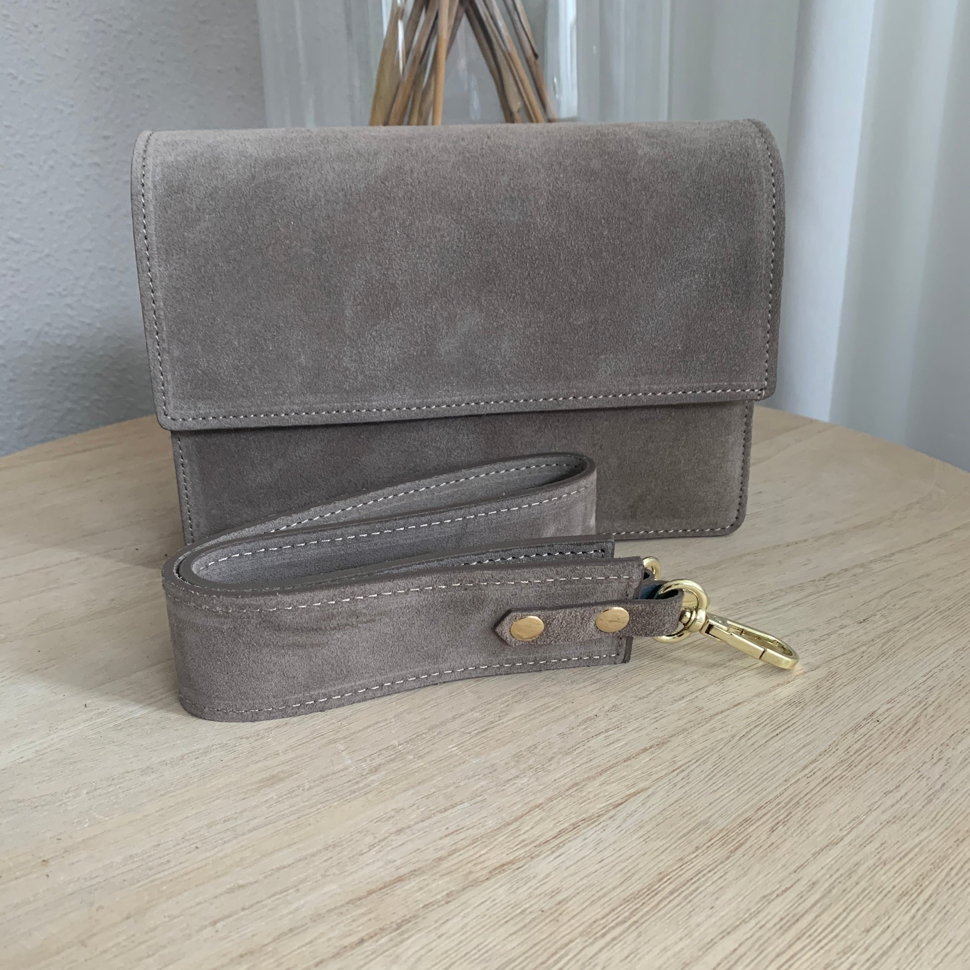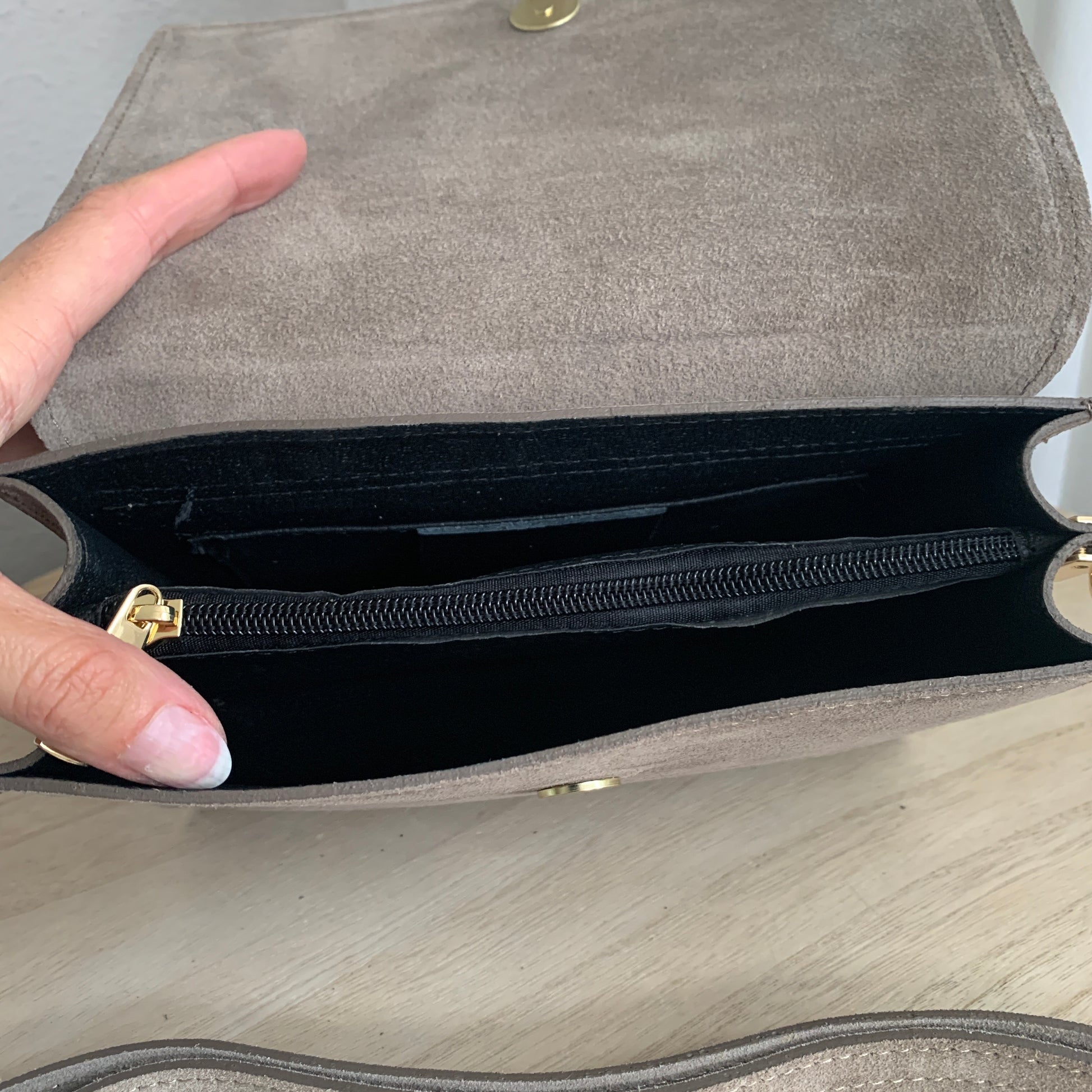 Prachtige stijlvolle leder suèdine tas ‘Mud’ kleur