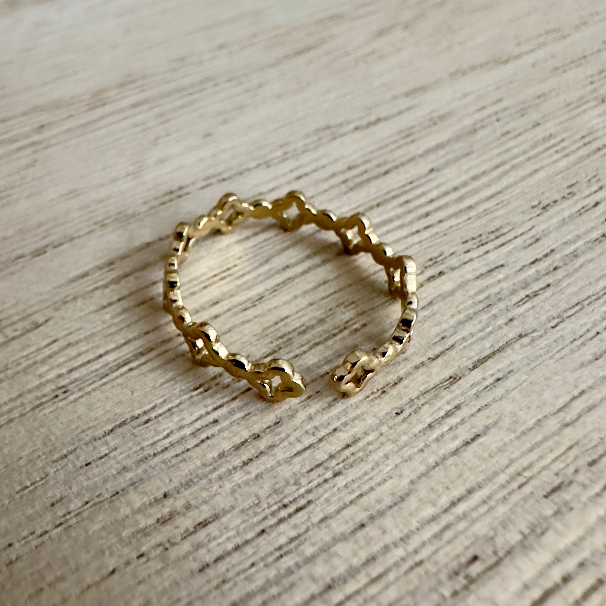Leuke minimalistische ring die altijd past omdat hij verstelbaar is. Leuk om samen te dragen met andere ringen!