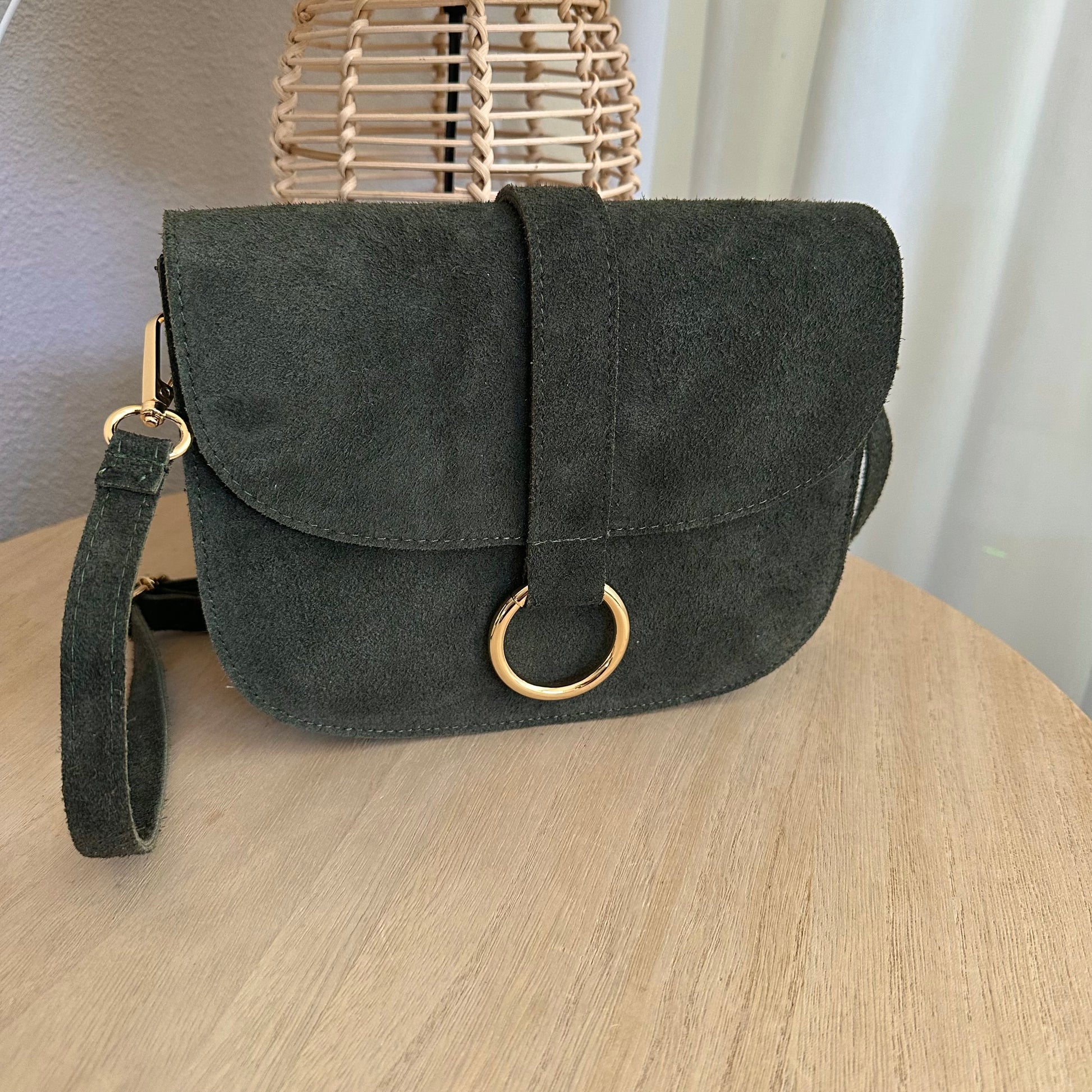Schoudertas Maan suède leder Donkergroen Gouden ring