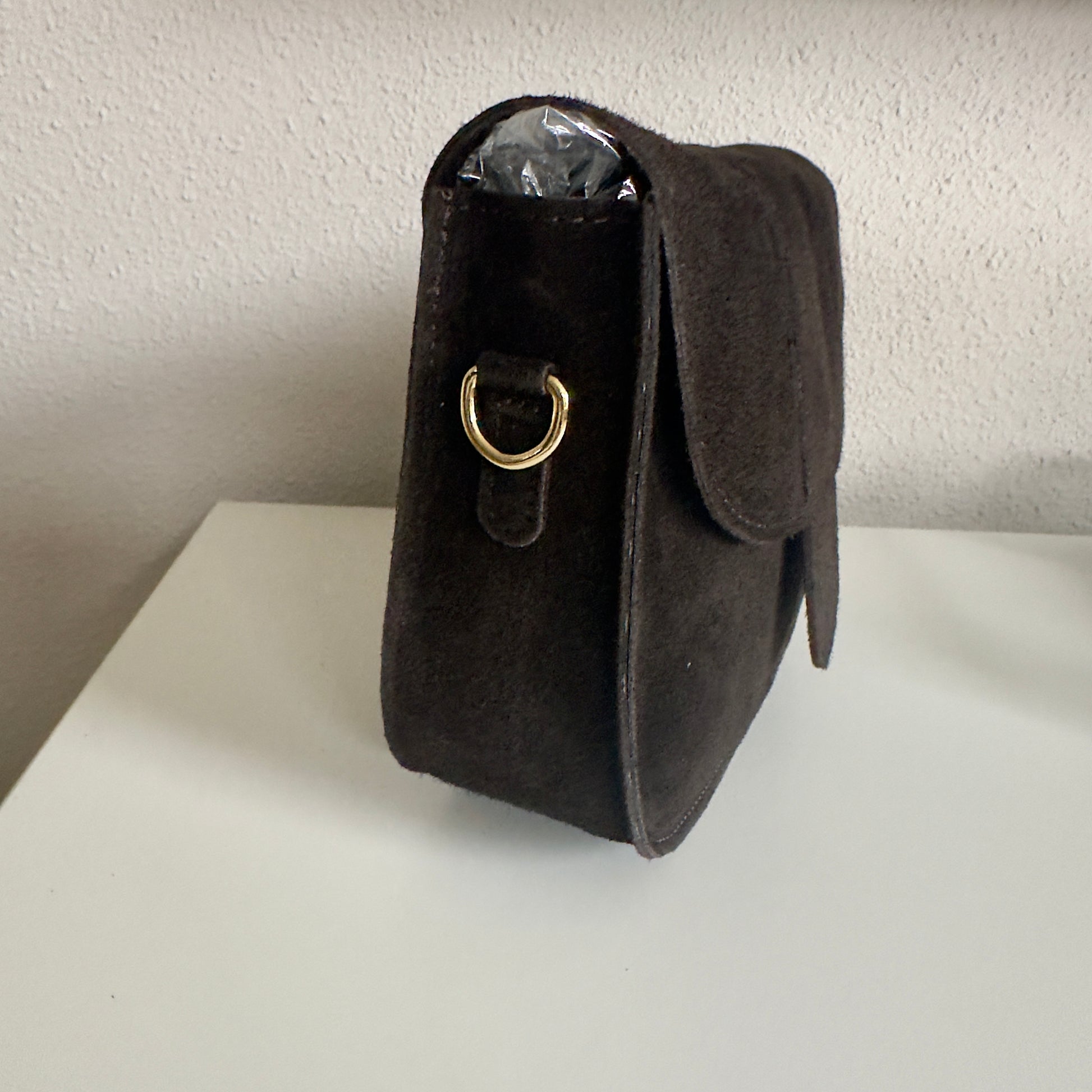 Schoudertas ‘Maan’ suède leder donkerbruin