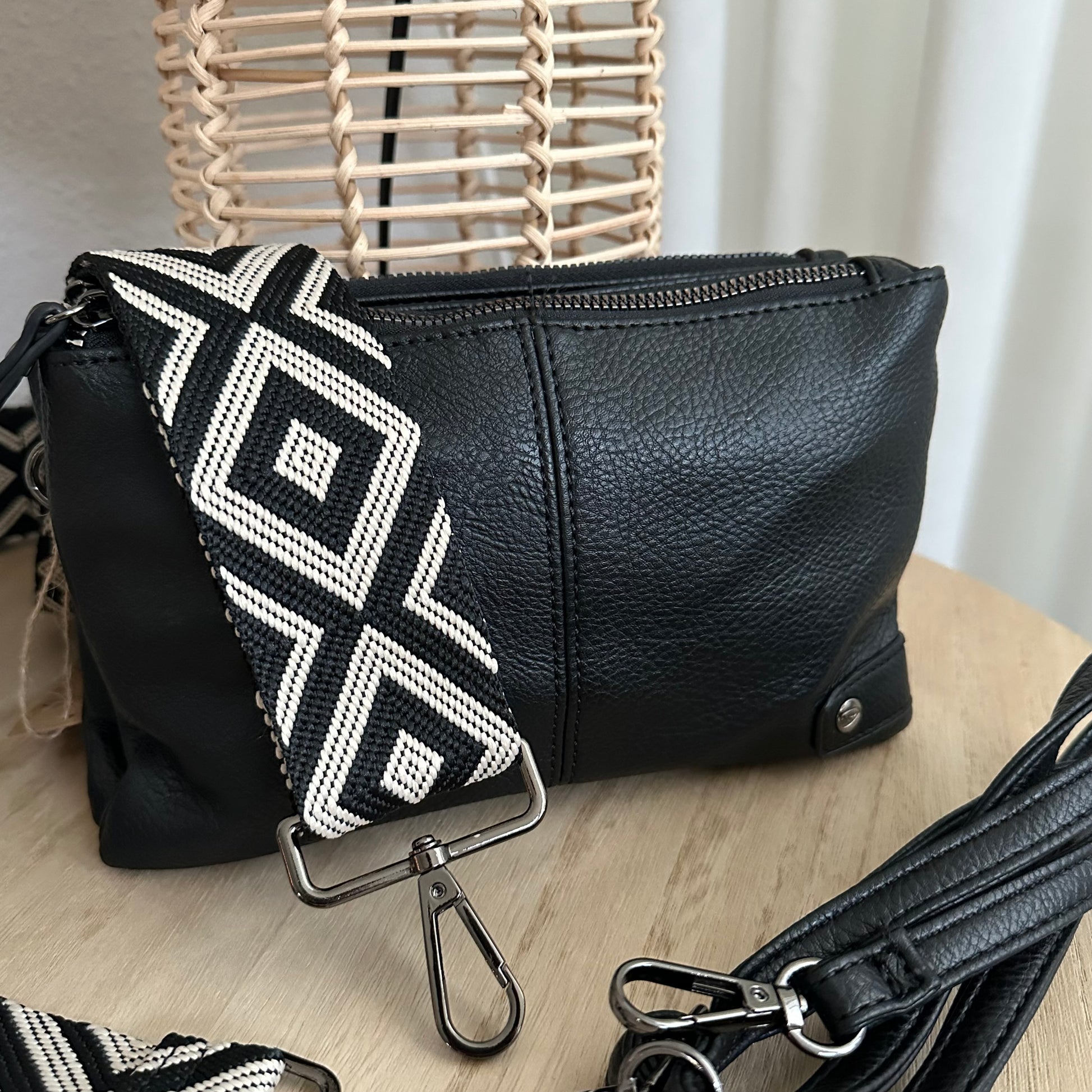 Schoudertasje/crossbody 'Castel' inclusief twee banden Zwart