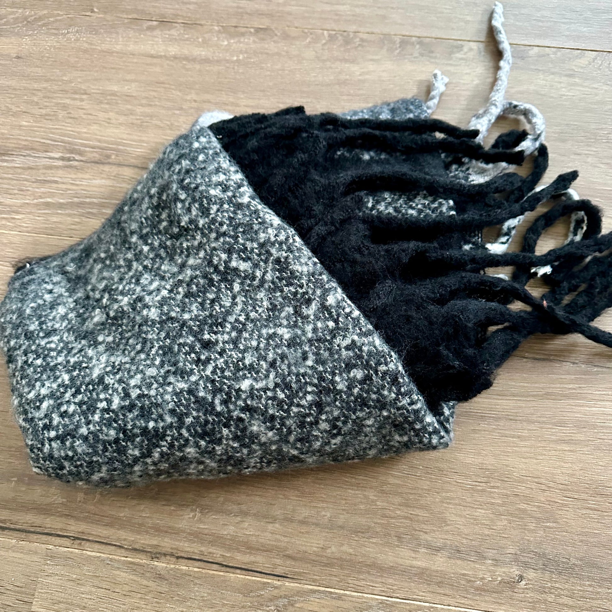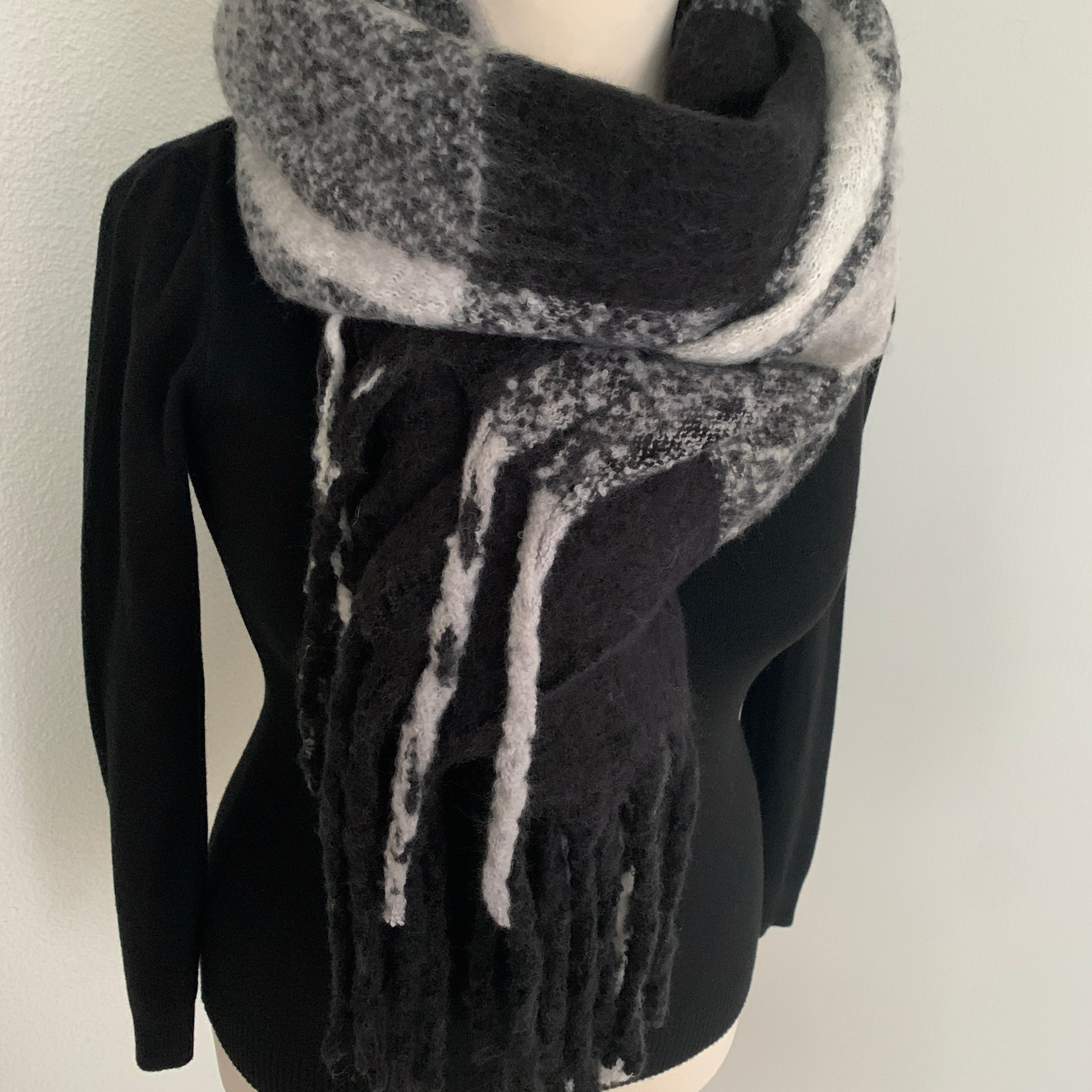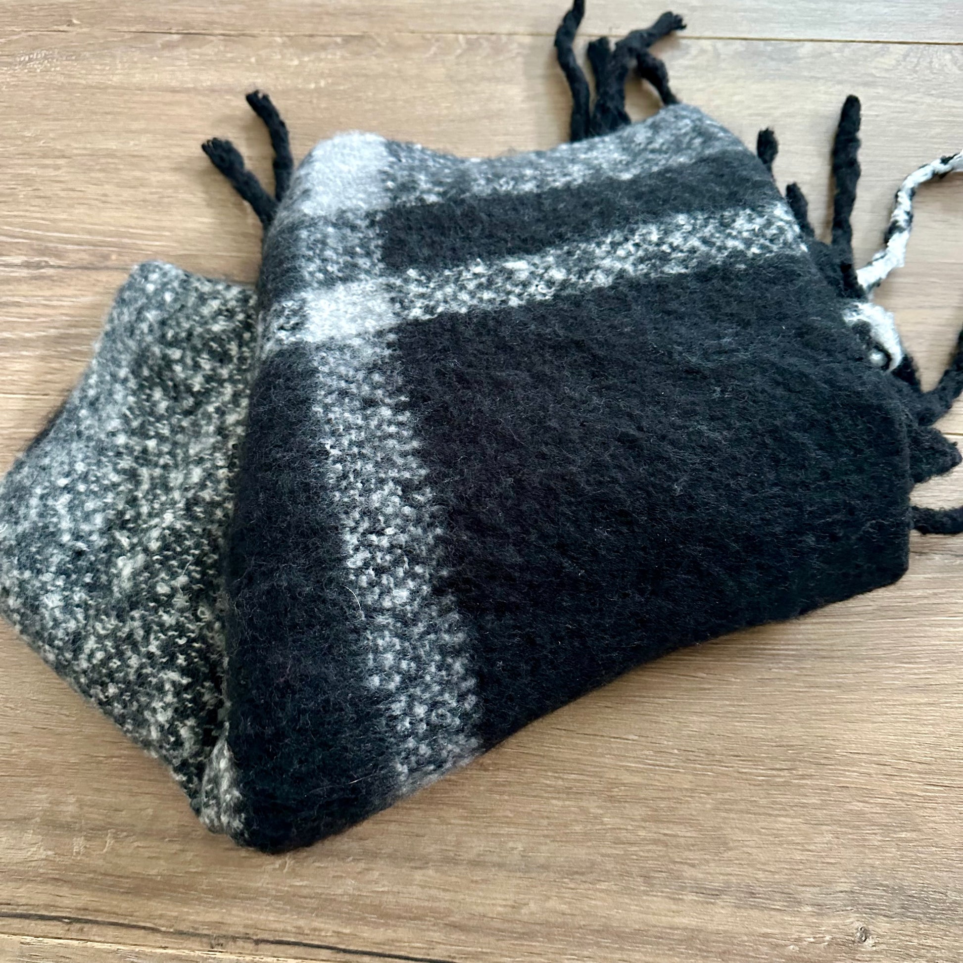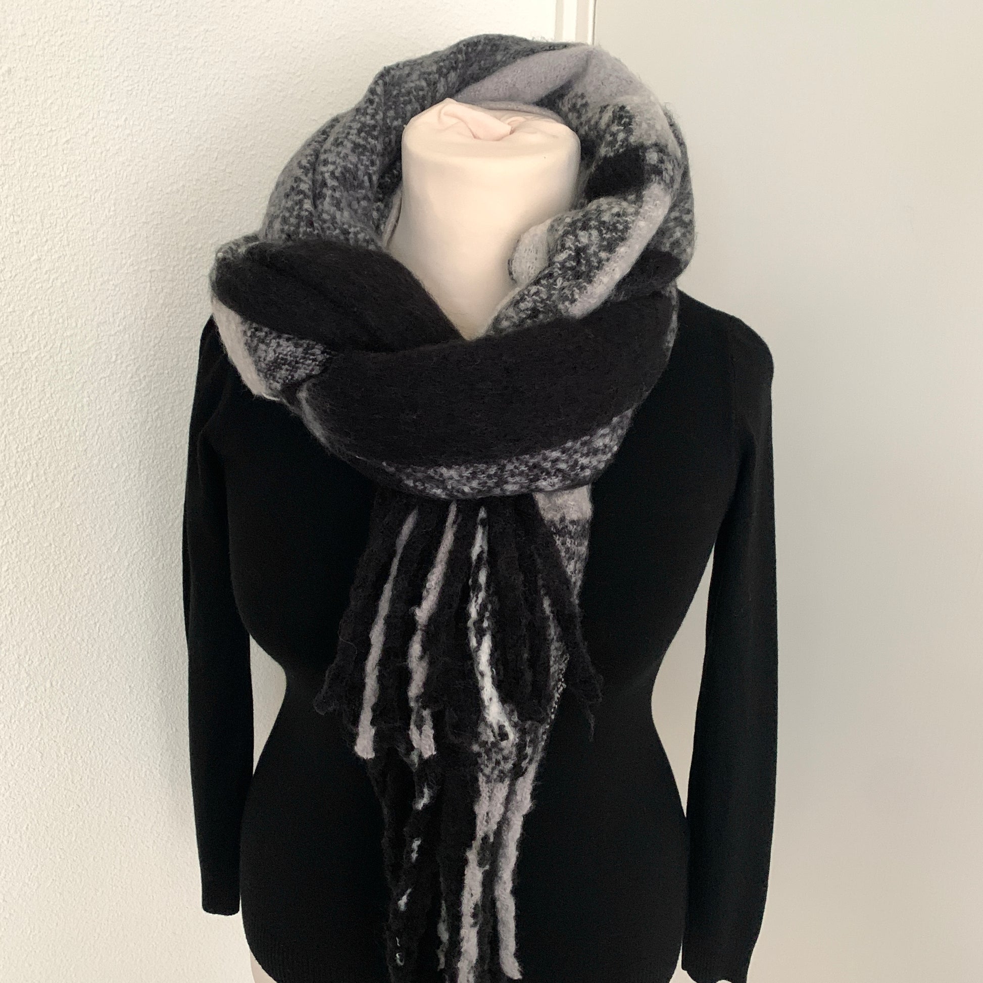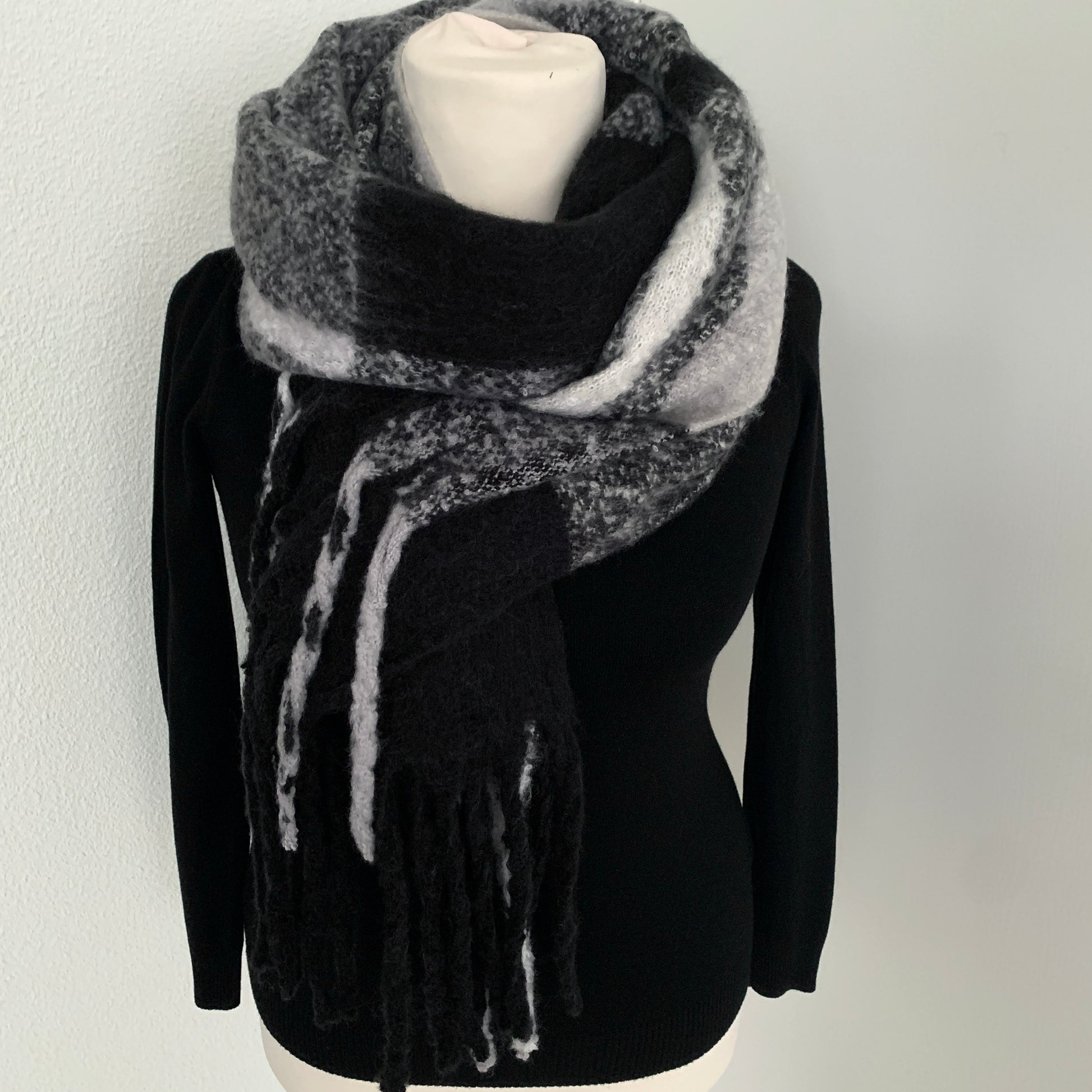 Sjaal recht Zwart/Grijs/Wit met franjes