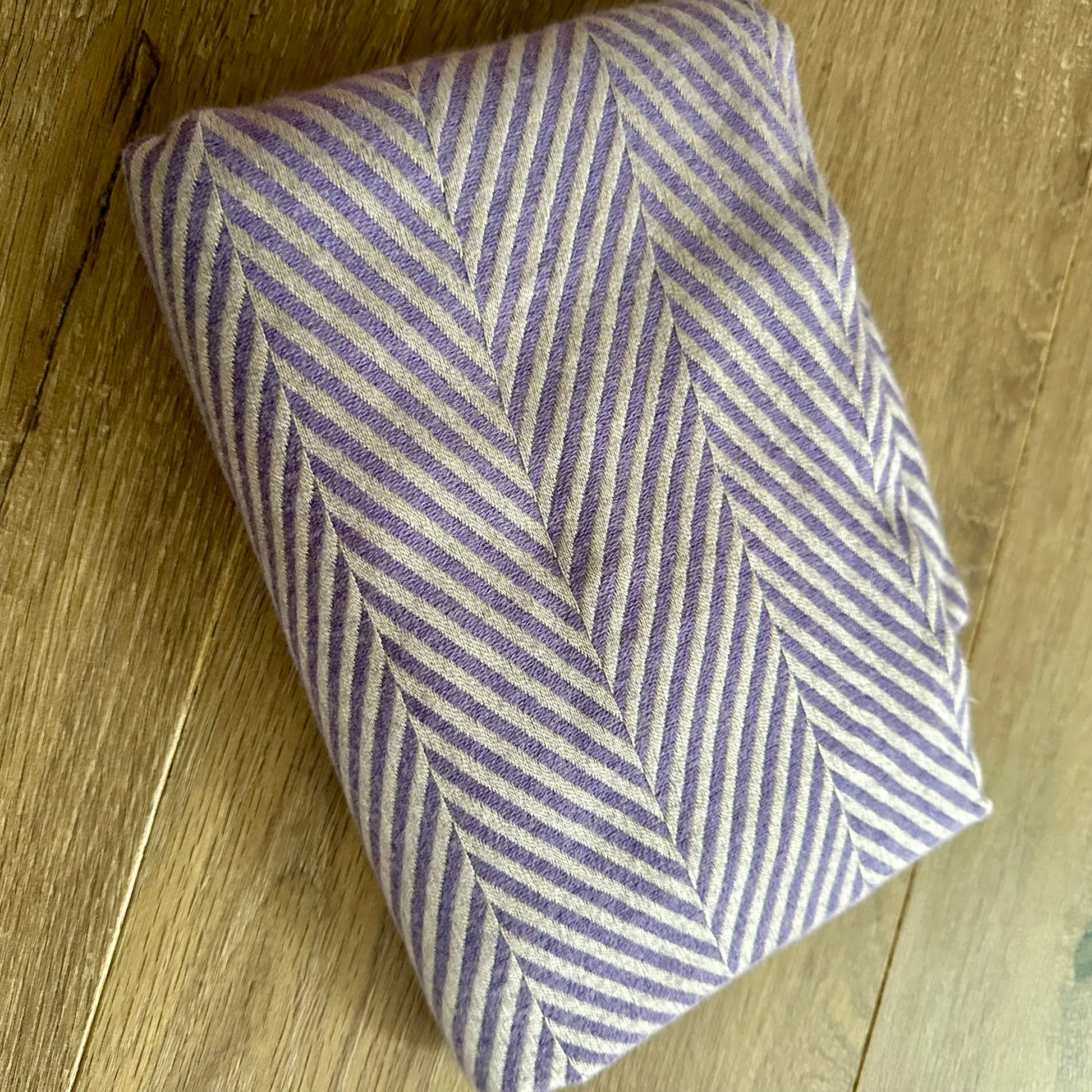 Prachtige langwerpige sjaal in een mooie kleur lila met gebroken wit.