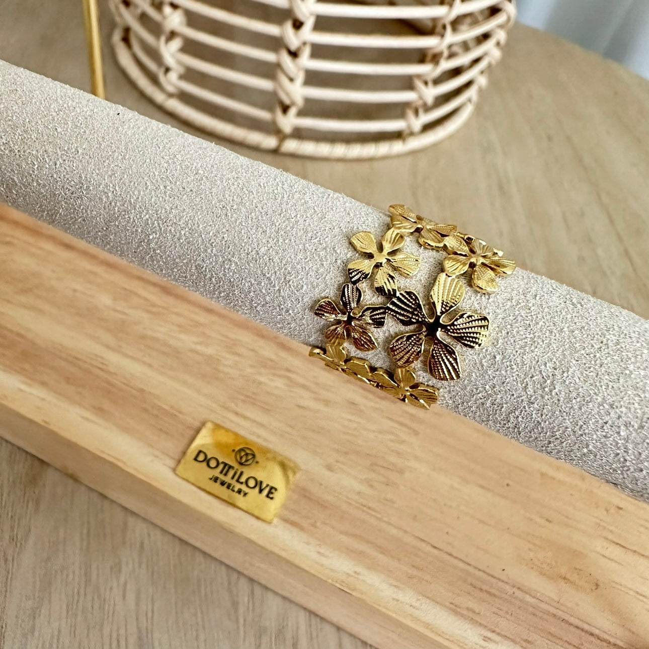 Prachtige statement ringen prachtige bloemen die aan elkaar vast zitten.