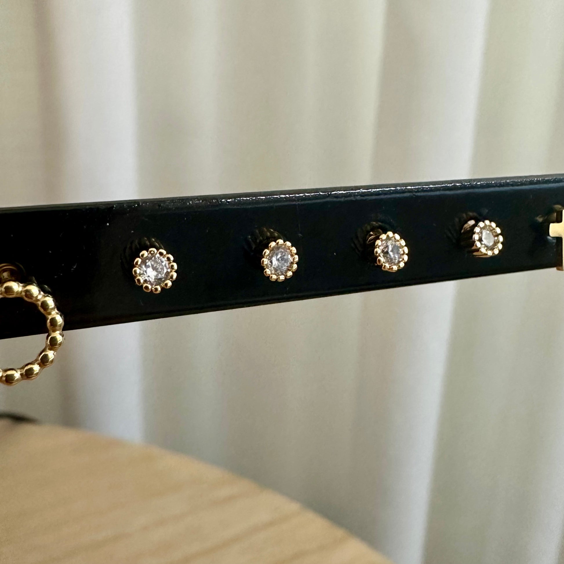 Stud van 4 mm. Een zirkonia steentje met daaromheen een goud geribbeld randje. Leuk om als tweede oorbel te dragen naast een hangertje.