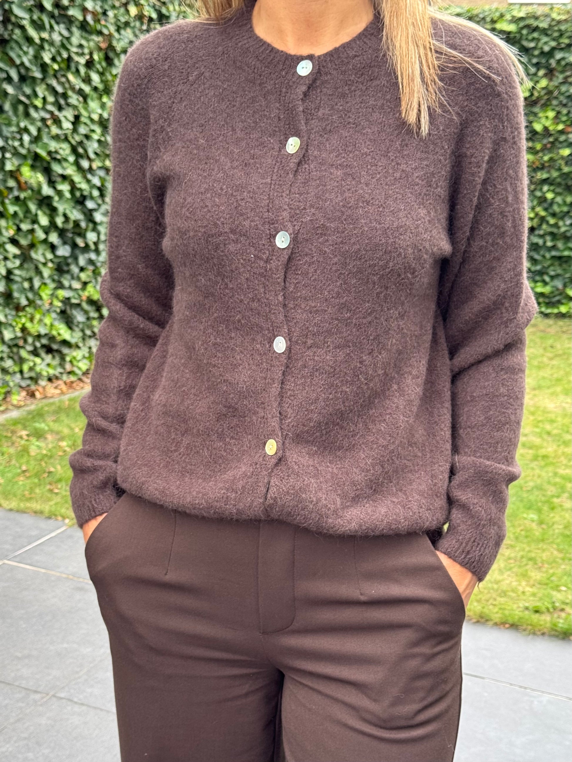 Vestje met knoopjes ronde hals Chocobruin
